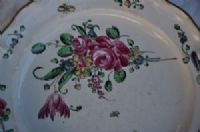 Juego de ocho platos de Pesaro del siglo XVIII con decoración de rosas.