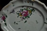 Plato ovalado con forma de Pesaro, decoración de rosas, siglo XVIII