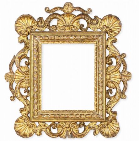 Rare frame in carved, openwork, and gilded wood. Central Italy, 17th century Overall dimensions: cm 53X58 Rebate: cm 27 X 33 Sight size: cm 25 X 31